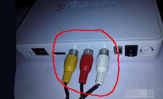 2.然后把三色音频线与网络机顶盒连接,然后把三色音频线另一端的三个插头按对应的颜色插入网络机顶盒的音频孔中。