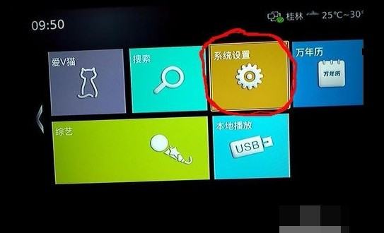 6.按网络机顶盒专用的遥控器上的返回键,找到系统设置点击后进入网络设置。