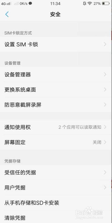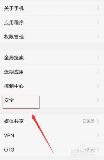 第三,在更多设置页面中找到 安全 选项,点击进入安全页面,如下图所示;