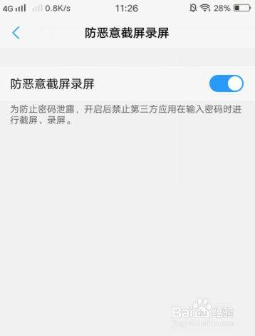 第五,我们点击 防恶意截屏录屏 选项,点击进入,把 此应用的 开关按钮打开即可完成;