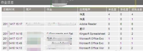如图我们就能看到详细的打印机记录了,有打印的具体时间日期、用户、张数、是否彩色、文档名等。