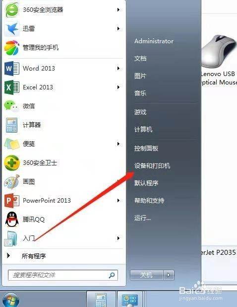 首先,点击桌面左下角的开始菜单,找到“设备和打印机”;