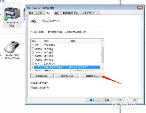 弹出属性窗口,我们点击“端口”菜单,再点击“配置端口”;