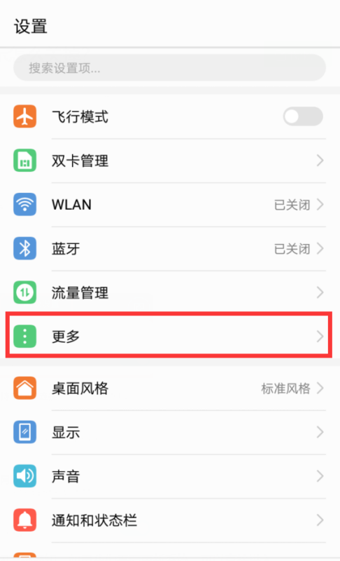 2、在手机设置页面上找到“更多”选项,点击“更多”。