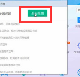 1、打开电脑管家,点击工具箱中的“测试网速”功能,切换到“网络修复”选项卡进行修复,点击网络修复中的“全面检测”,如图所示。