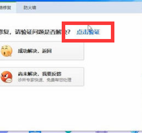 2、检测完成后就会显示检测到的网络问题。这时显示已经修复完成,使用“点击验证”就可以测试是否能正常上网,如图所示。