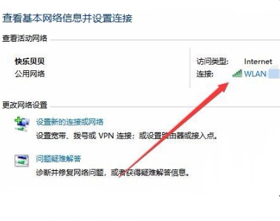 2、在打开的网络和共享中心窗口中,点击正在连接的Wifi。