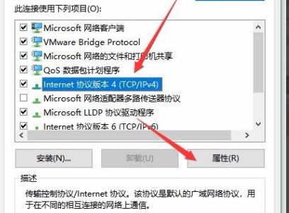 4、在打开的无线网卡属性窗口中,选中Tcp/IP V4设置项,然后点击下面的“属性”按钮。