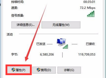 3、接下来就会打开无线网络的属性窗口,点击窗口中的“属性”按钮。