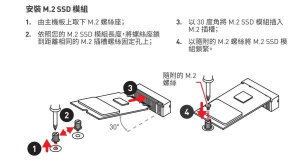 下面的M.2硬盘的安装方法,如果螺丝座所在的位置长度没有问题,步骤1、2可以省略。