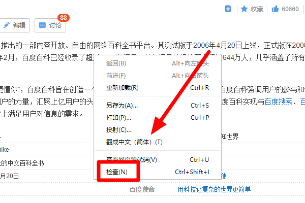2、右击需要复制的文字,在展开的菜单中点击“检查”按钮: