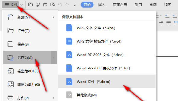 6、然后点击文件,另存为,可以将文件另存为Word文档格式。