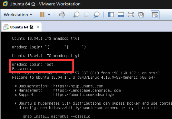 2、进入命令行界面以后,输入用户名和密码进入系统: