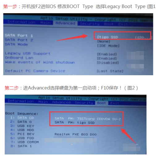 进BOOT选择硬盘为第一项;按F10保存开机选项