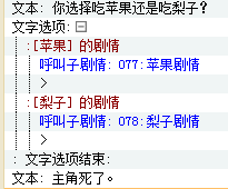 “主角吃了梨子,然后……梨子有毒!主角死了。”