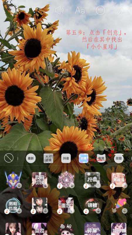 第五步:点击「创意」,然后在其中找出「小小星球」