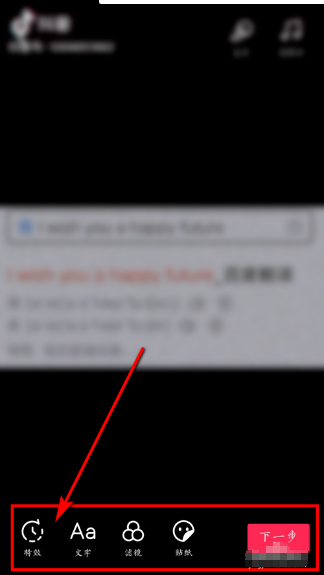 四、添加特效之后,就可以使用特效制作抖音作品了,作品拍摄完成后点击下一步。