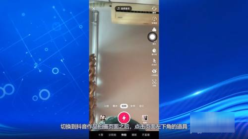 二、切换到抖音作品拍摄页面之后,点击页面左下角的道具。