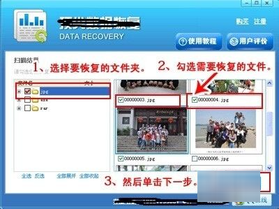 4、第四步:扫描完查找扫描结果,勾选需要恢复的文件,然后点击下一步。