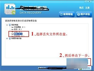2、第二步:选择丢失文件所在盘,然后点击下一步。