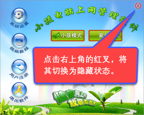 1,首先在电脑上安装并运行小孩电脑上网管理软件,按热键Ctrl+Alt+Shift+M调出软件,并点击左上角的“系统设置”。