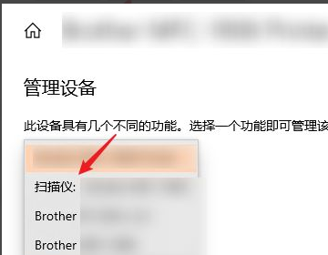 5、之后,点击打印机的名称,选择下方的扫描仪。