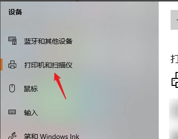 3、点击打印机和扫描仪的选项,选择右侧的打印机设备。