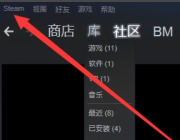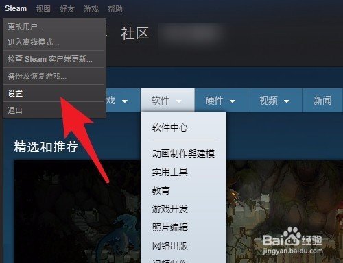 1、首先在打开的steam软件中,在左上角选到steam设置。