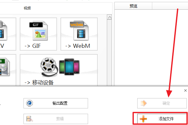 3、然后从打开的格式转换界面中,我们点击”添加文件“按钮以选择相应的视频文件。