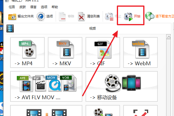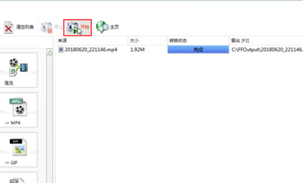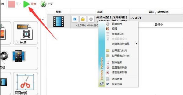 5、最后选中相应的任务,点击”开始“按钮,即可自动完成相关视频格式的转换操作。