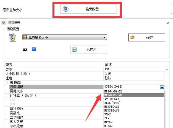4、同时还可以在”输出配置“界面中,完成有关待转换视频的相关转换参数的设置。