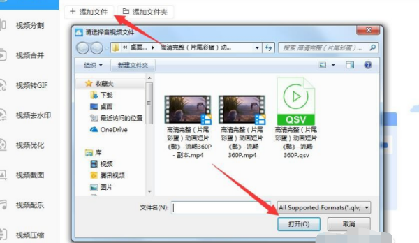 3、再点击弹出框中的“添加文件”,将视频导入。