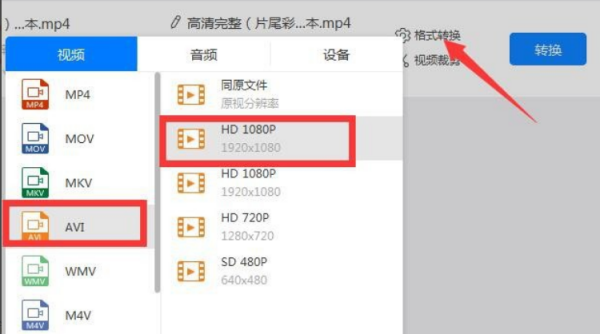 2、从弹出的窗口中,根据实际需要选择其中一种视频格式进行转换: