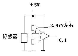--提示:用一个直流参考电压与传感器输出电压进行比较,就可以将传感器的输出电压转变成0,1了。比较器可用单电源供电的普通运放型号(成本1元不到)。参考电压调整:当传感器不加压时,比较器输出低电平;加压时,比较器输出高电平。(也可以根据需要作相反调整,这里只要运放的输出对调。)