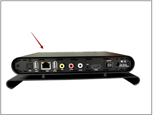 1、把网络机顶盒与电视连接线的黑插头一端,插上网络机顶盒的最右端。如图所示