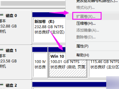 2、在压缩卷前面的分区上右键-》选择扩展卷,