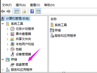 2、接着在打开的管理页面中,鼠标单击下【磁盘管理】,如图。