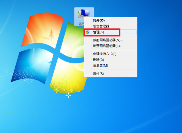 1、在电脑桌面选中计算机图标,右击鼠标,在快捷菜单中选择“管理”选项进行点击。