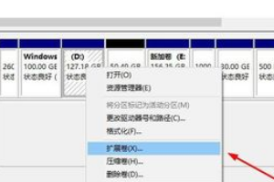 4,等上面操作完成之后,然后对C盘进行“扩展卷”,如图,扩展50g。