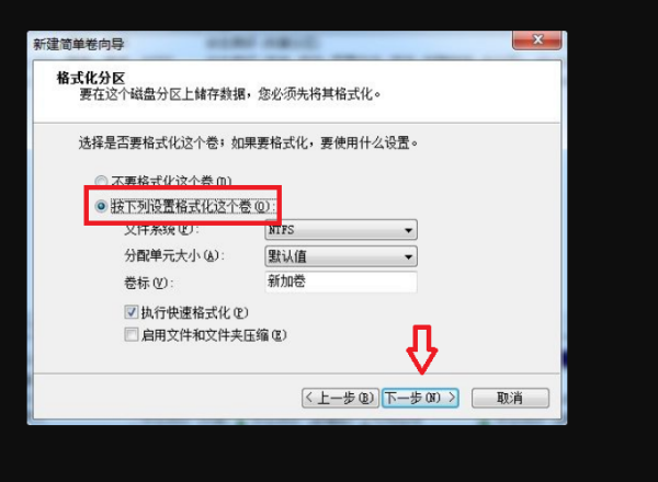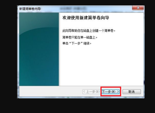 6、在“新建简单卷向导”中界面中点击“下一步”。