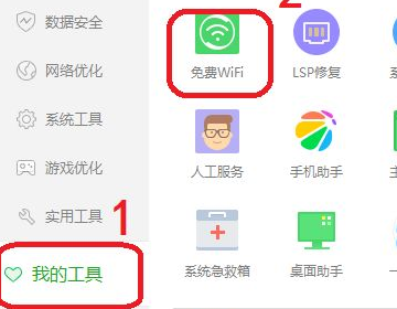 2、然后点击“我的工具”,选择“免费wifi”,第一次点击会自动安装,如下图所示。
