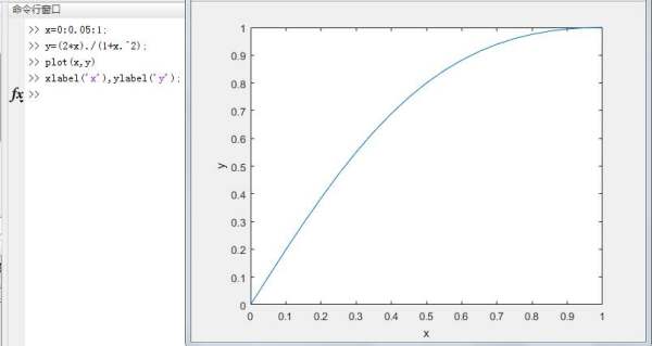 >>y=(2*x)./(1+x.^2); %求x向量对应的y向量