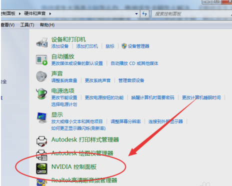 然后在硬件和声音里面选择 打开显卡控制面板,如下图所示。