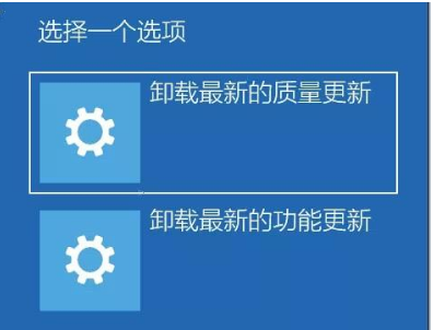 第二步:在“选择一个选项”屏幕上,选择“卸载最新的质量更新”或“卸载最新的功能更新“。
