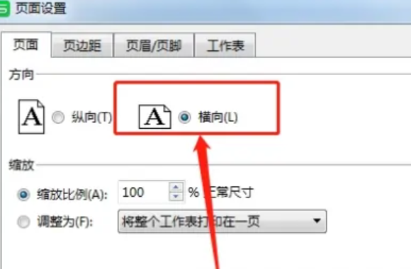 5、如果设置后表格还是无法打印,可以改变纸张方向,设置为“横向”的方式。