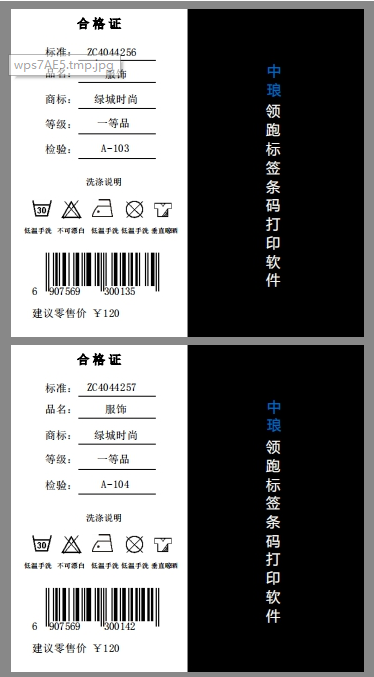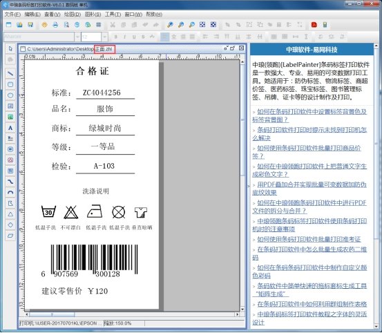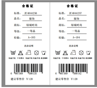 3. 使用同样的方法,设计出标签反面的内容(反面.zhl),如下图。在“打印设置”窗口中设置好各项参数,点击“打印”按钮,输出标签反面的PDF文档(反面1.pdf)。