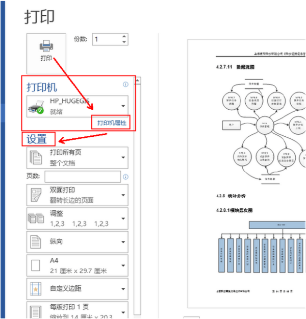 3、最后打开office、word等软件,在打印窗口选择“打印机属性”进行设置