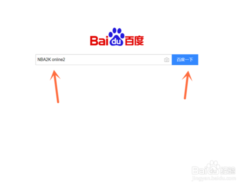 第一步,我们在百度搜索主页搜索框中输入NBA2K online2,并点击右侧的百度一下按钮;