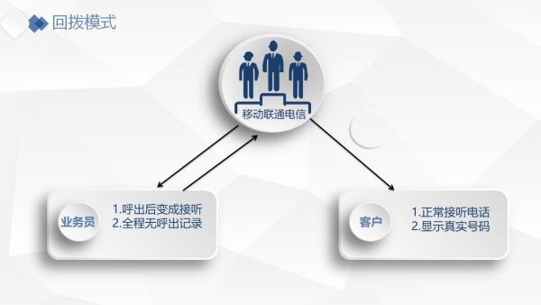 这就是回拨模式的原理,也是彻底解决打电话封号的办法。关注公号:新程通讯,专注于智能外呼系统,现有回拨、中间号、sip等多种线路,帮助中小企业解决外呼和管理的难题!