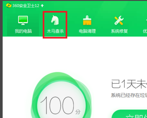 1、打开计算机的安全卫士,在页面上方的菜单栏中可见“木马查杀”。